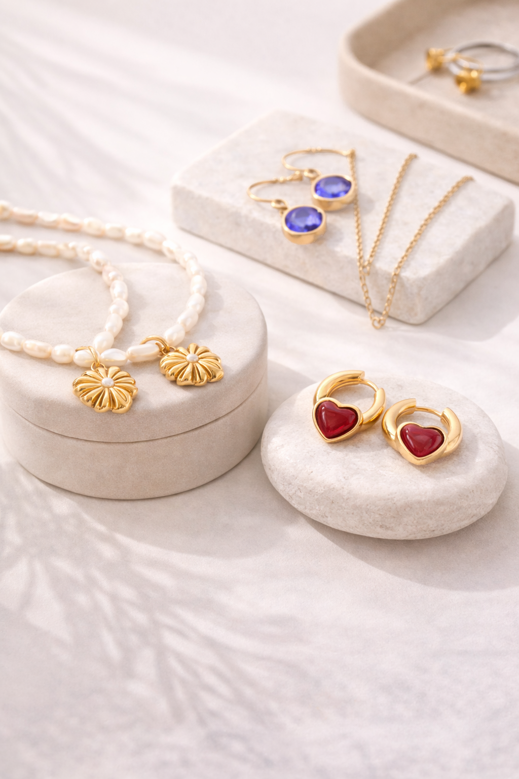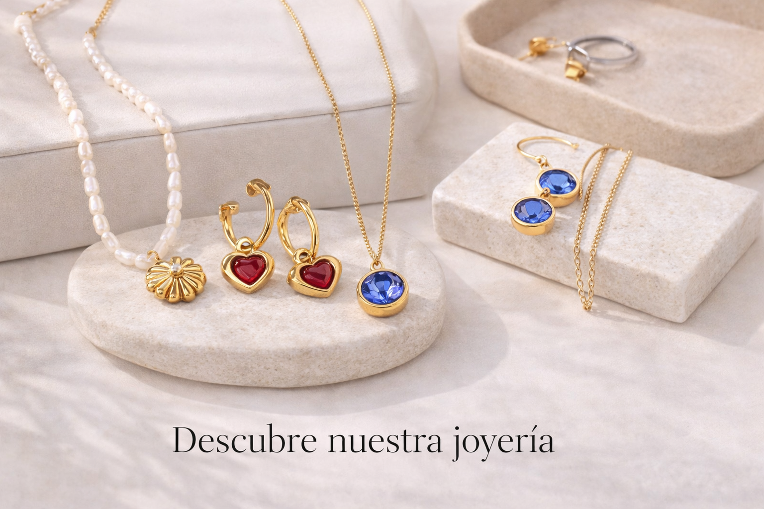 Aretes Argolla Plateada con Corazón Rojo Acero Quirúrgico 316L · Waterproof.