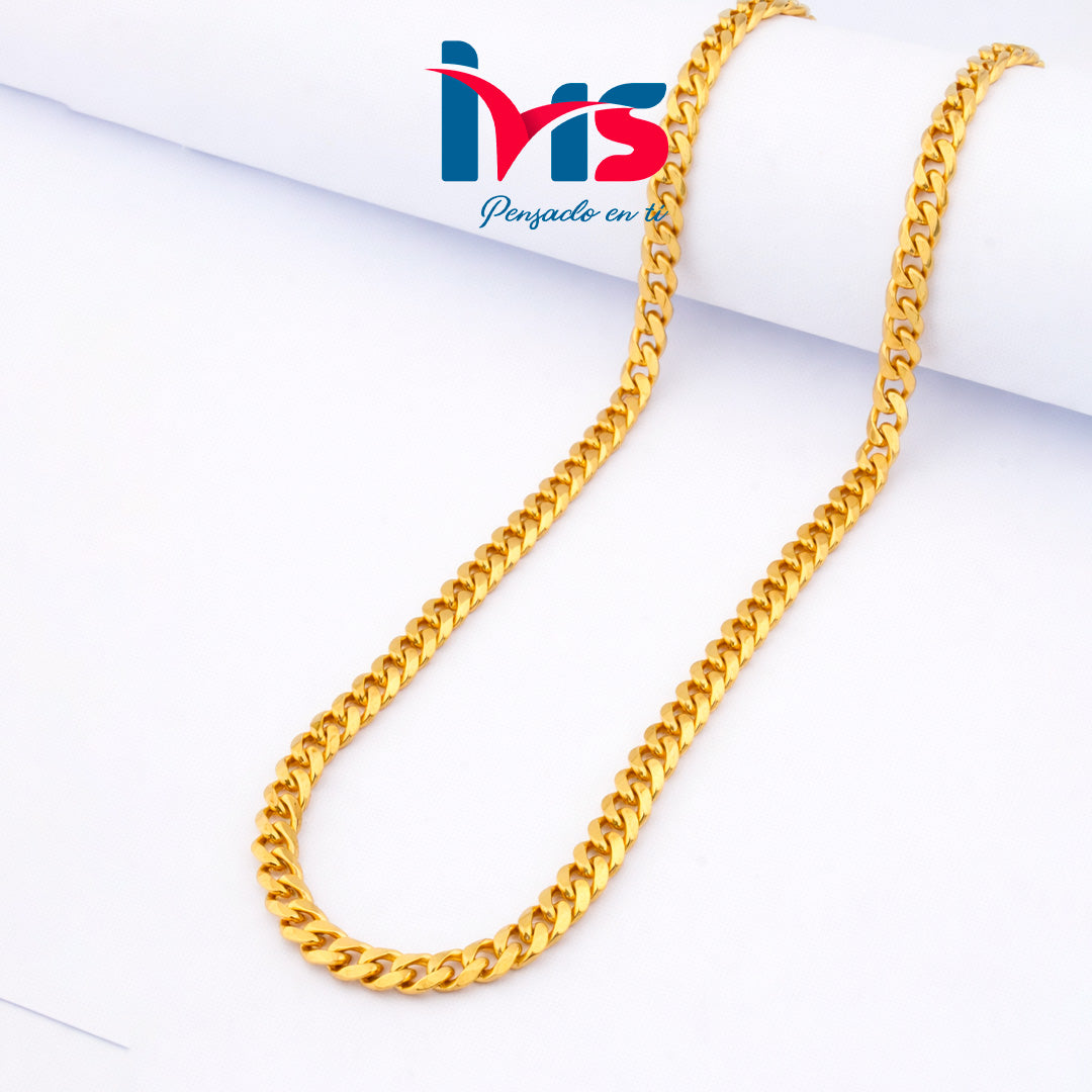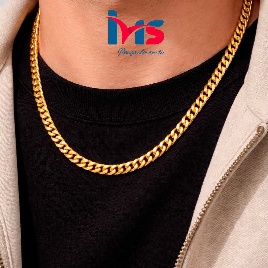 Cadena tipo cubana elaborada en acero inoxidable 304 de alta calidad, con un elegante acabado dorado y eslabones sólidos perfectamente pulidos. Su diseño clásico y masculino aporta un estilo moderno y sofisticado, ideal para uso diario o para complementar looks urbanos y elegantes.
