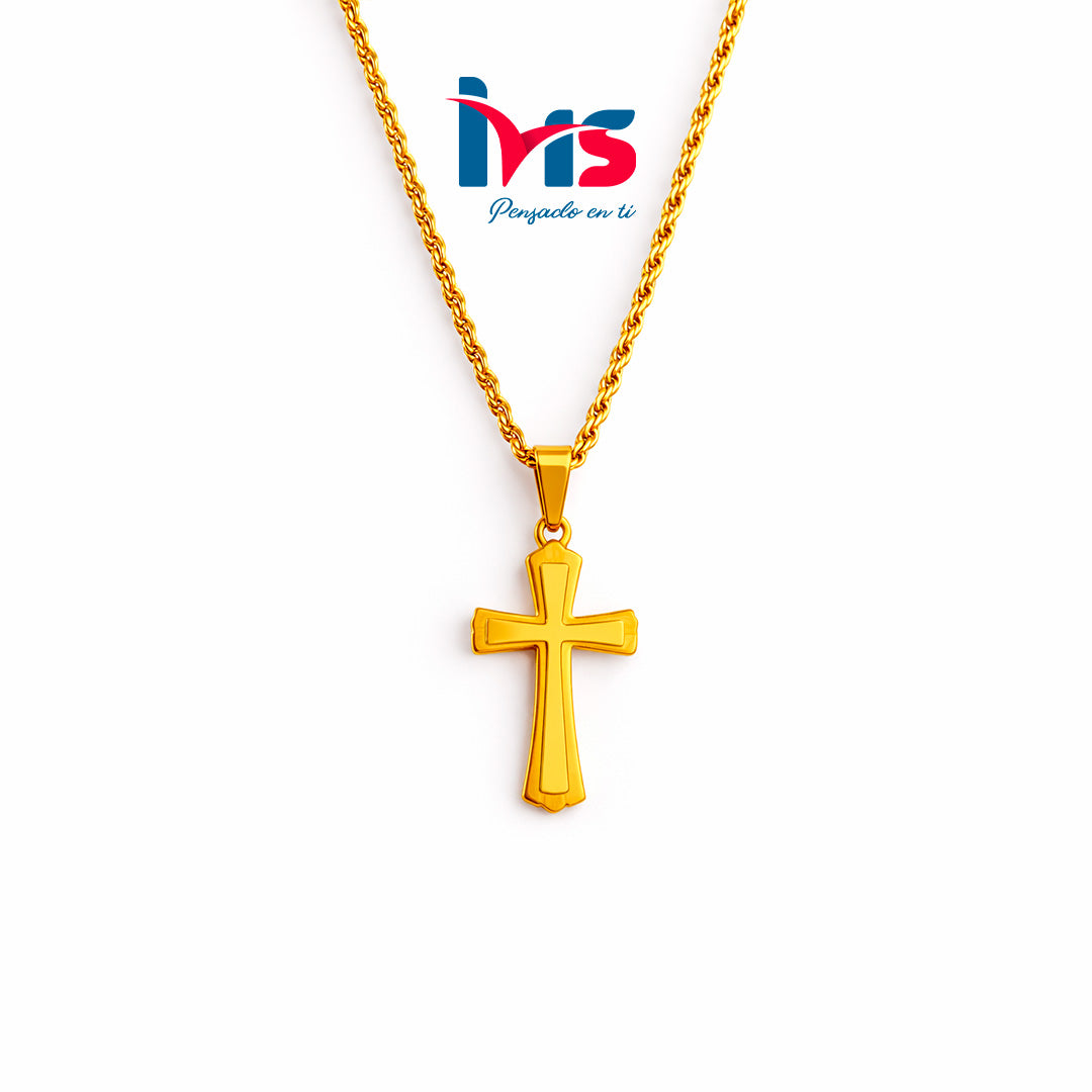 Elegante collar con dije de cruz elaborado en acero inoxidable 304 de alta calidad, reconocido por su excelente resistencia, durabilidad y acabado impecable. Su diseño clásico y atemporal presenta una cruz de líneas definidas y pulido brillante, ideal para quienes buscan una joya con significado y estilo.